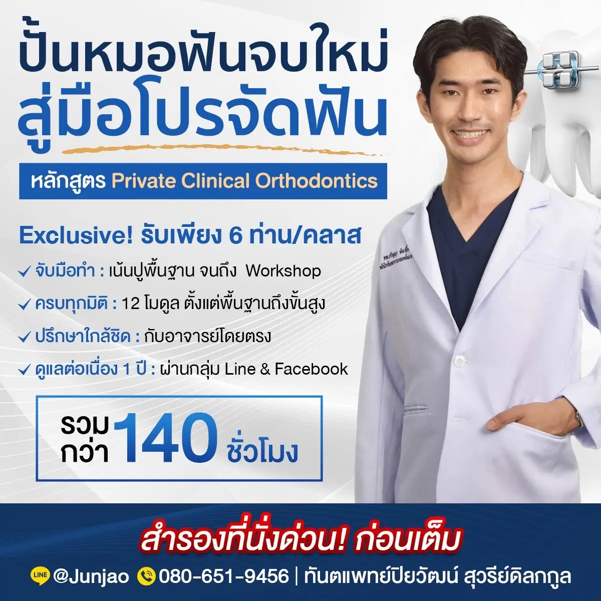หลักสูตรที่รวบรวมแก่นและเคล็ดลับทางคลินิก เพื่อเปลี่ยนคุณหมอจากมือใหม่สู่มือโปรด้านทันตกรรมจัดฟัน มุ่งเน้นการเสริมสร้างทักษะในการปฏิบัติทางคลินิก